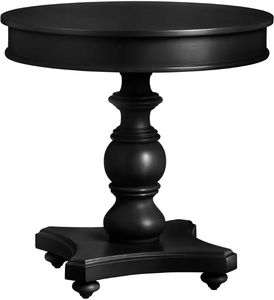 The design is accented with four decoratively carved feet and crowned with a round tabletop in matching finishing. Whether seeking a foundation piece for your favorite bedside lamp or an accent that complements your home office, this timeless design is guaranteed to elevate your interior.