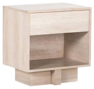 Beautifully light. A recessed T-shape plinth base of grey-finished mahogany supports a clean-cut nightstand of ashen walnut veneer, with open shelving plus and a handy drawer with hidden push-latch hardware.Read More